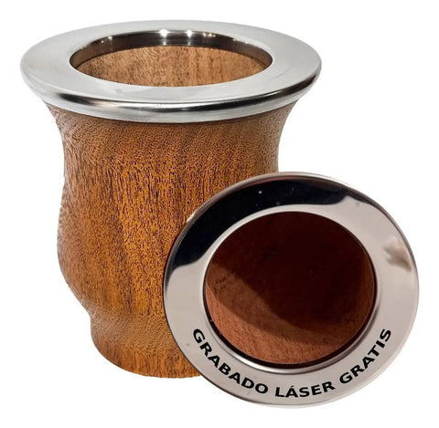 Mate camionero artesanal elaborado en madera de algarrobo, con virola de acero inoxidable que garantiza durabilidad y elegancia. Cada pieza es única gracias a las vetas naturales de la madera, pulidas para resaltar la belleza característica del algarrobo. Diseño funcional con capacidad generosa: 10,5 cm de alto, 9,5 cm de diámetro exterior y 7 cm de profundidad interior. Perfecto para disfrutar del mate con estilo y autenticidad, combinando tradición con acabados de calidad superior.